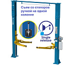 Гарантия 36 мес – наш монтаж, 24 мес – самостоятельная установка. Верхняя синхронизация (чистый пол). Ограничитель подъёма при достижении максимальной высоты. Высота от пола до ограничительной планки 3442 мм. Съем со стопоров ручкой на одной колонне (экономия времени). Увеличена толщина каретки до 8 мм. Поднимает все легковые+Джипы (h=110÷1825 мм). Между колоннами 2800 мм. 220/380В. г/п. 4 тонны.