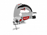 Мощность 850 Вт. Глубина реза сталь/дерево 10-100 мм. Производительность 800–3000 ходов пилки в минуту. Вес – 2,4 кг. Рукоятка с прорезиненной поверхностью.  Эта модель лобзика оснащена: Функция плавного пуска, регулируемая металлическая подошва и кнопка фиксации выключателя, лазерный указатель направления, подсветка, быстросъемное крепление пилки, система маятникового хода, удобно вынесенный на ручку регулятор оборотов, возможность подключения пылесоса.
