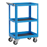 Тележка инструментальная открытая, трехполочная. Идеально подходит для перемещения и хранения небольших агрегатов (стартеры, генераторы, и т.д.) в слесарном и кузовном цеху. Размеры, мм: 855x750x500. Вес, кг: 23