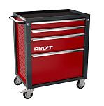4 ящика. Нагрузка на тележку 220кг. Корпус сварной. На боковых стенках корпуса выполнена квадратная перфорация для установки крючков, держателей и других аксессуаров. Ящики на шариковых телескопических направляющих полного выдвижения. Обеспечен свободный и плавный ход ящиков даже при полной загрузке. Тележка оснащена системой антиопрокидывания новой конструкции, которая блокирует открывание ящиков. Габаритные размеры тележки с учетом колес, лотка и ручки (ВхШхГ), не более: 800 х 780 х 490 мм. Вес: 42,2 кг.