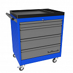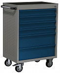 5 ящиков. Для хранения инструмента в ЕВРОЛОЖЕМЕНТАХ. Боковые панели с перфорацией (для установки аксессуаров). Цельносварная конструкция корпуса тележки. Центральный замок Euro-Lock. Шариковые направляющие полного выдвижения. Размеры (высота x ширина x глубина): 850 х 700 х 460 мм. Вес: 55 кг.