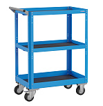 Для размещения и хранения подручного инструмента. Оснащена поворотными прорезиненными колесами размером 4" х 1" (2 колеса оборудованы тормозом). 2 стальные боковые ручки. 3 полки (грузоподъемность каждой полки 40 кг).