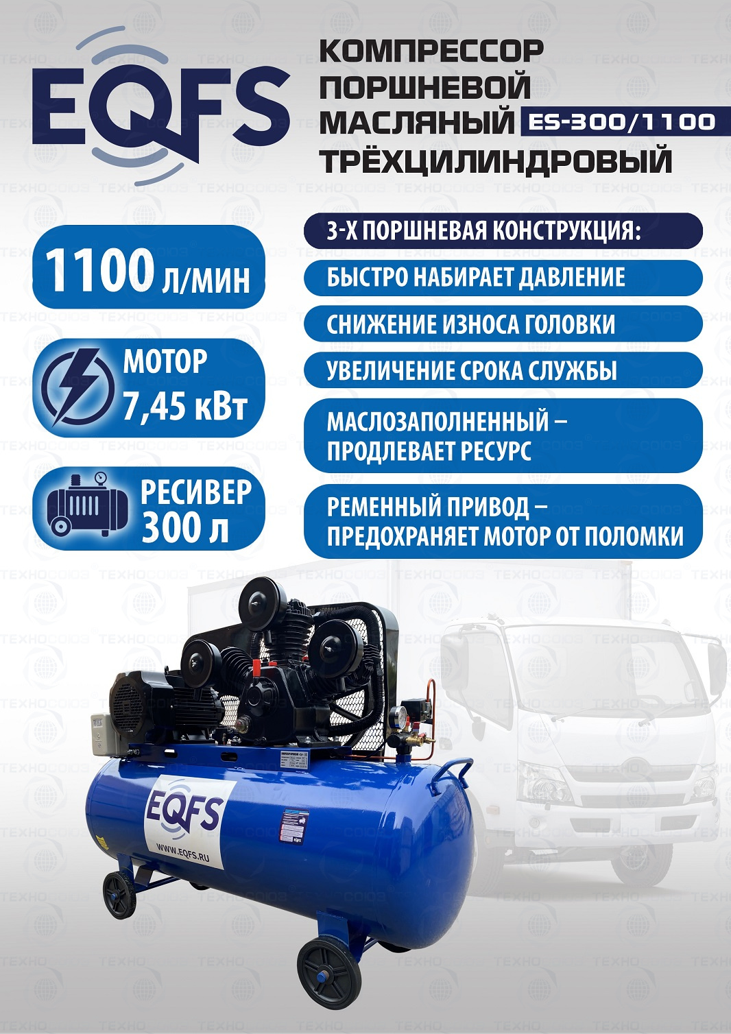 поршневого компрессора производительность 1100 л/мин. Мощность 7,45 кВт. Напряжение 380В. Ёмкость ресивера 300 л.