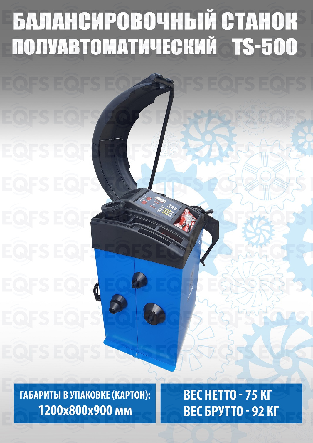 Полуавтоматический балансировочный станок TS-500 для колес легковых автомобилей, мотоциклов и легких грузовиков с диаметром диска с резиной до 760 мм. Размеры диска: ширина 3–9” (76-228 мм) , диаметр диска" -  10–21” (254-533 мм). Вал-36 мм. Максимальный вес колеса с диском – 65 кг. C кожухом. Точность ±1гр. Напряжение 220В. . В комплекте: кожух с автозапуском + клещи + кронциркуль + быстрозажимная гайка + набор конусов