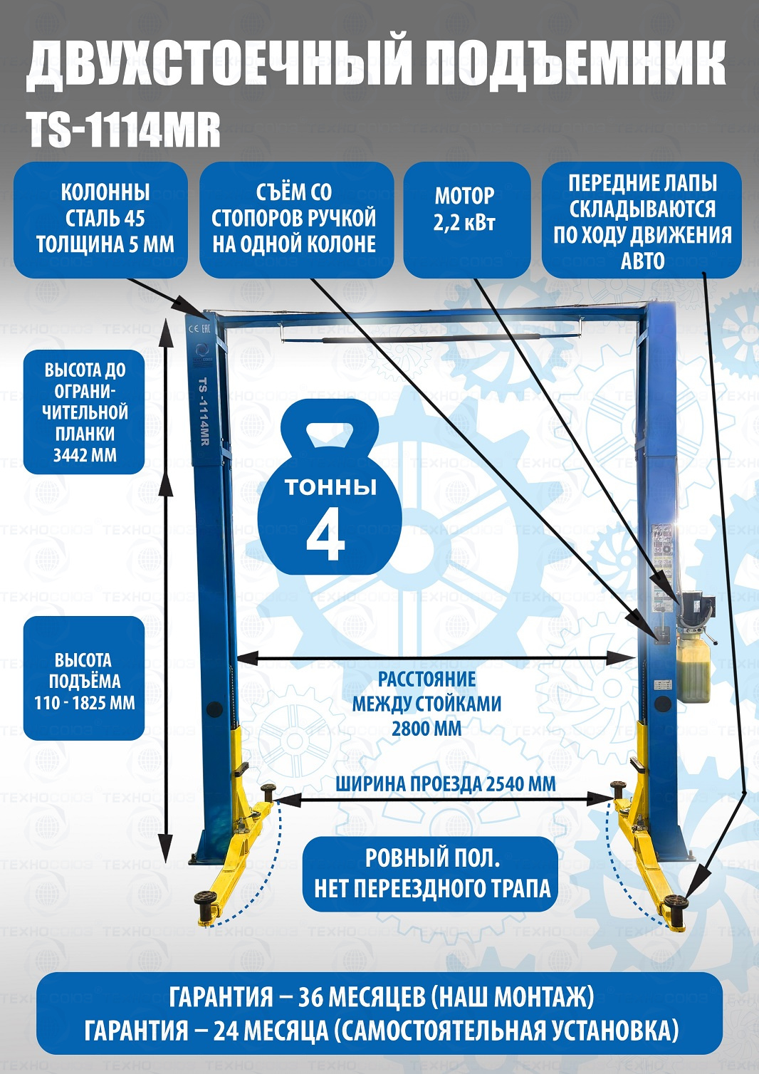 Подъемник с верхней синхронизацией, 2-х стоечный, TS-1114MR