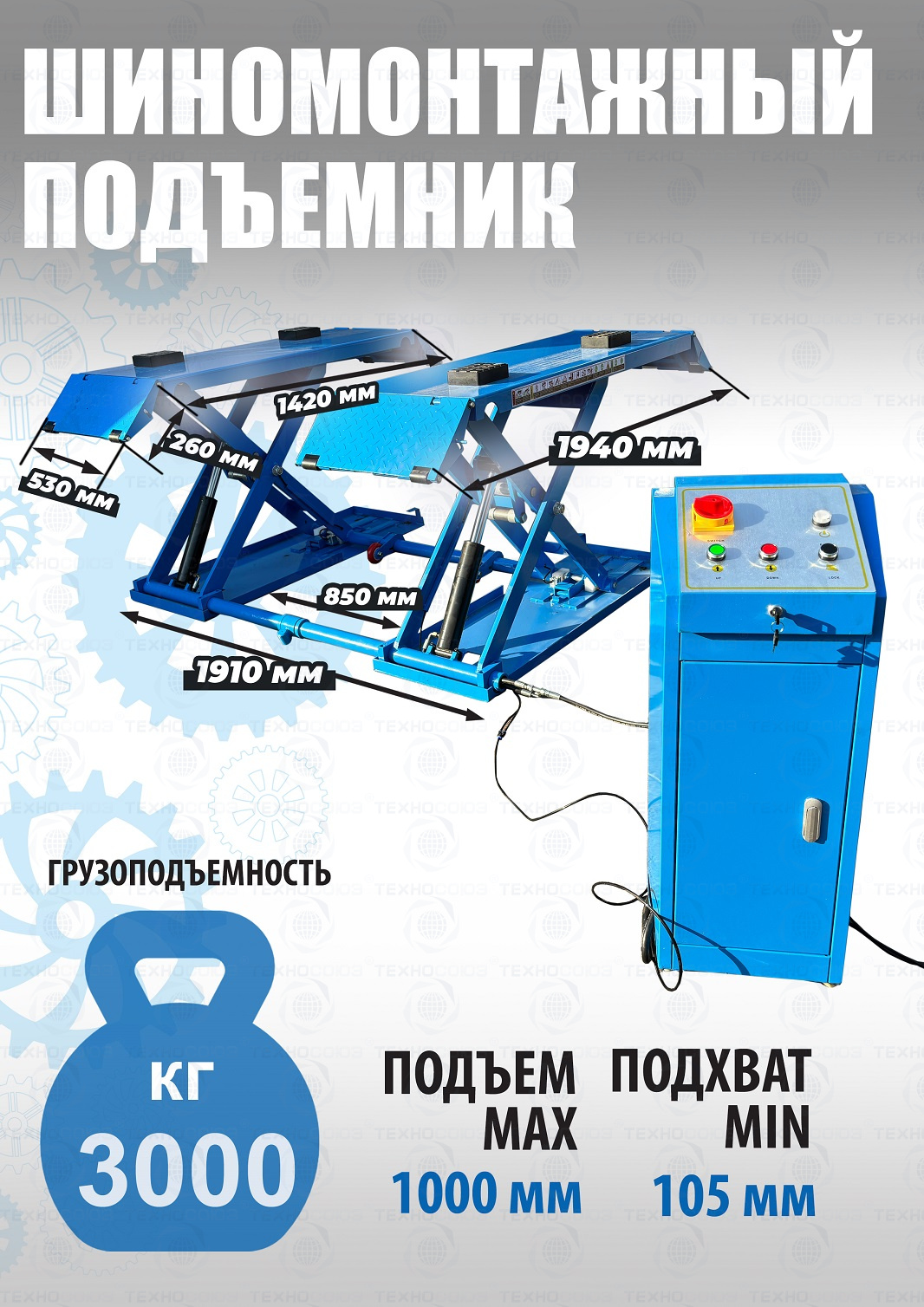+ Шиномонтажный подъемник г/п 3,0 тонны.