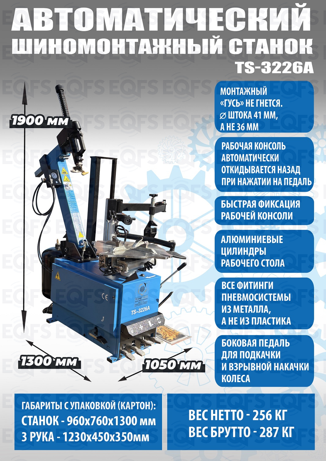 Автоматический шиномонтажный станок TS-3226A Оптимальный вариант цена/функционал. Самый продаваемый автоматический станок! В комплекте: встроенный увеличенный бустер емкостью 24 литра (взрывная подкачка) + третья рука для работы с низкопрофильными шинами и RanFlat. Для колес легковых автомобилей, легких грузовиков, микроавтобусов и коммерческой техники. Внешний зажим 11-21”. Внутренний зажим 12-24”. Поставляем на 220В и 380В.